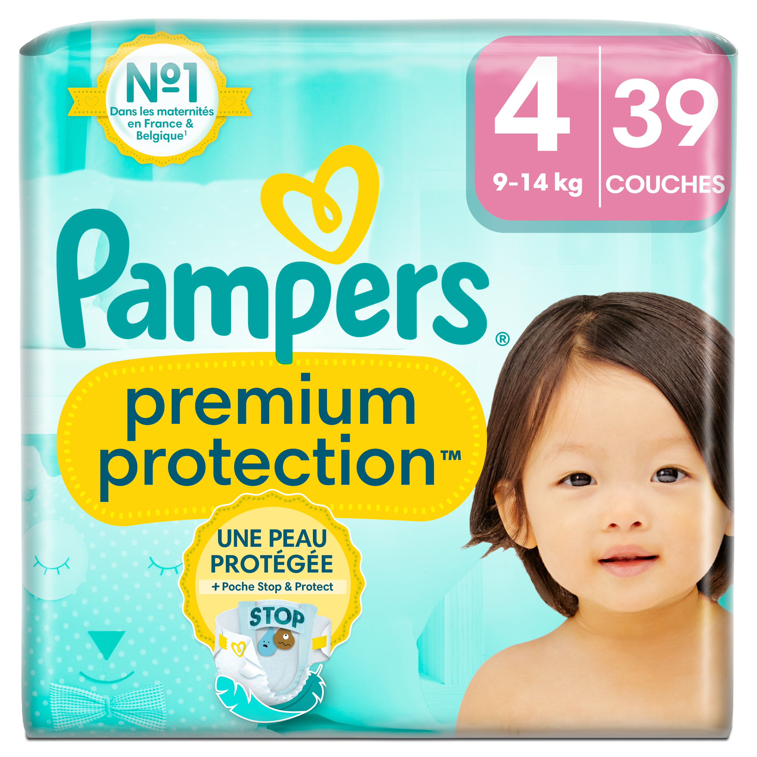 Double protection : pour la peau et contre les fuites. Les couches Pampers N°1 pour le confort et la protection des peaux sensibles - testées et approuvées par des bébés ! Nous avons conçu la couche Pampers N°1 spécialement pour la peau délicate des nouveau-nés. C'est également notre couche N°1 contre les fuites. Les couches Pampers Premium Protection offrent notre meilleure protection, grâce à 1) une absorption instantanée, avec des millions de micro-aérations absorbantes qui éloignent instantanément l'humidité et les selles molles de la peau et les capturent au cœur de la couche. Garder la peau délicate de votre bébé bien au sec et protégée. 2) Une poche Stop & Protect unique pour éviter les fuites à l'arrière de la couche. 3) Des matières ultra-douces pour envelopper votre bébé dans un nuage de confort et de protection. Et 4) notre technologie unique Comfort Fit avec un système d'attaches superposables. Les couches Pampers Premium Protection, le choix N°1 des maternités en France*, sont 100 % sûres pour la peau de votre bébé. Elles sont testées dermatologiquement et ne contiennent aucun des allergènes de parfum listés par l'UE (comme réglementé par la réglementation cosmétique de l'UE N°1223/2009). Pas étonnant que les bébés approuvent ! *Basé sur les données de distribution au mois de janvier 2023 dans les maternités en France