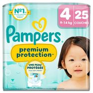 DOUBLE PROTECTION : pour la peau et contre les fuites. Les couches Pampers N°1 pour le confort et la protection des peaux sensibles - testées et approuvées par des bébés. Nous avons conçu la couche Pampers N°1 spécialement pour la peau délicate des nouveau-nés. C'est également notre couche N°1 contre les fuites. Les couches Pampers Premium Protection offrent notre meilleure protection, grâce à 1) une ABSORPTION INSTANTANÉE, avec plus de 1 000 micro-alvéoles absorbantes qui éloignent instantanément l'humidité et les selles molles de la peau et les capturent au cœur de la couche, pour protéger la peau et la garder bien au sec. 2) POCHE UNIQUE STOP & PROTECT pour capturer les fuites à l'arrière de la couche. 3) Des MATIÈRES ULTRA-DOUCES pour envelopper votre bébé dans un nuage de confort et de protection. Et 4) notre technologie unique COMFORT FIT avec un système d'attaches superposables. Les couches Pampers Premium Protection, le choix N°1 des maternités en France*, sont 100% sûres pour la peau de votre bébé. Elles sont testées dermatologiquement et ne contiennent aucun des allergènes de parfum listés par l'UE (comme réglementé par la réglementation cosmétique de l'UE N°1223/2009). Pas étonnant que les bébés approuvent.