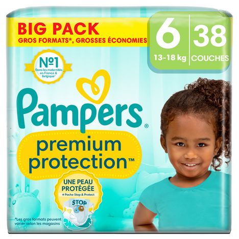 Double protection : pour la peau et contre les fuites. Les couches Pampers N°1 pour le confort et la protection des peaux sensibles - testées et approuvées par des bébés ! Nous avons conçu la couche Pampers N°1 spécialement pour la peau délicate des nouveau-nés. C'est également notre couche N°1 contre les fuites. Les couches Pampers Premium Protection offrent notre meilleure protection, grâce à 1) une absorption instantanée, avec des millions de micro-aérations absorbantes qui éloignent instantanément l'humidité et les selles molles de la peau et les capturent au cœur de la couche. Garder la peau délicate de votre bébé bien au sec et protégée. 2) Une poche Stop & Protect unique pour éviter les fuites à l'arrière de la couche. 3) Des matières ultra-douces pour envelopper votre bébé dans un nuage de confort et de protection. Et 4) notre technologie unique Comfort Fit avec un système d'attaches superposables. Les couches Pampers Premium Protection, le choix N°1 des maternités en France*, sont 100 % sûres pour la peau de votre bébé. Elles sont testées dermatologiquement et ne contiennent aucun des allergènes de parfum listés par l'UE (comme réglementé par la réglementation cosmétique de l'UE N°1223/2009). Pas étonnant que les bébés approuvent ! *Basé sur les données de distribution au mois de janvier 2023 dans les maternités en France