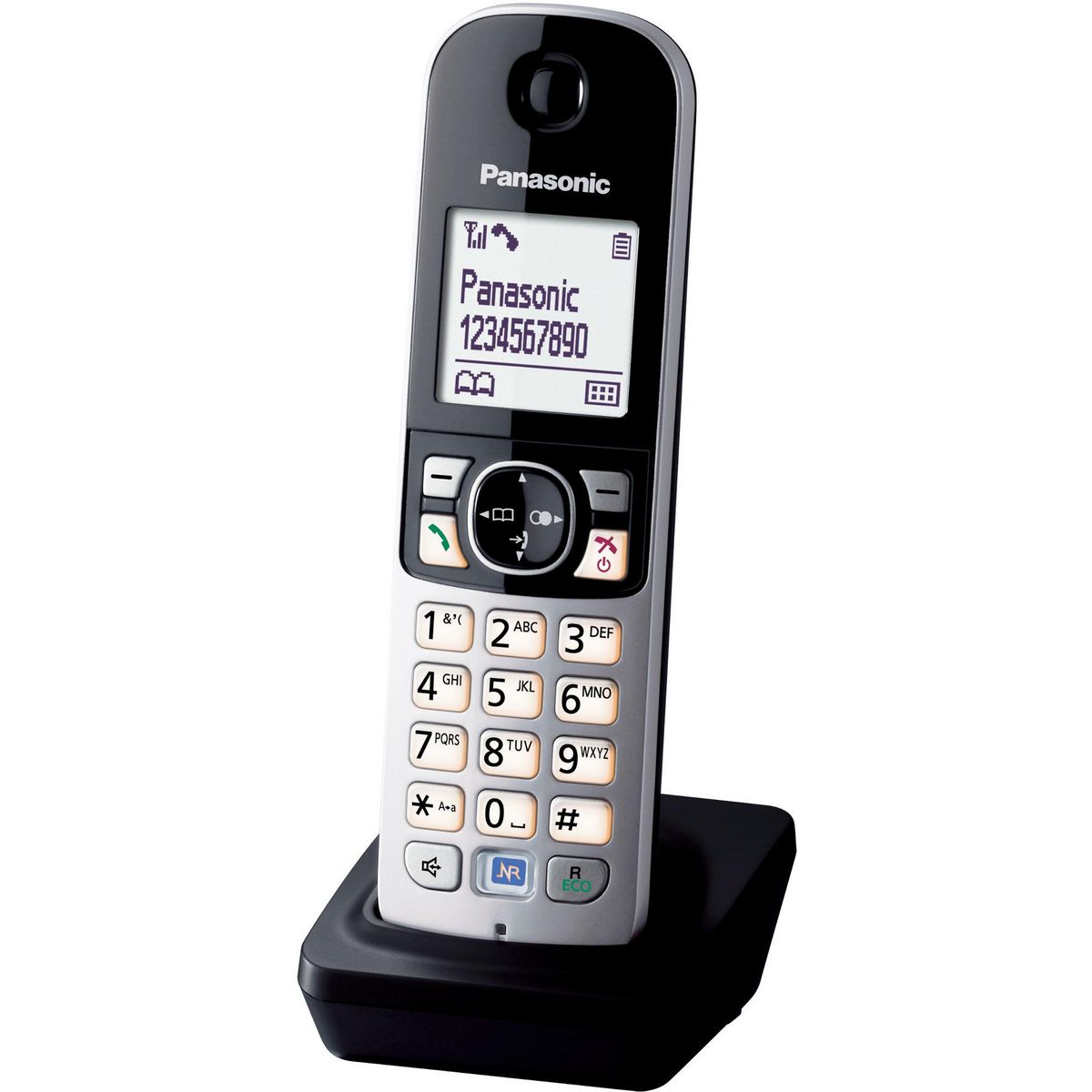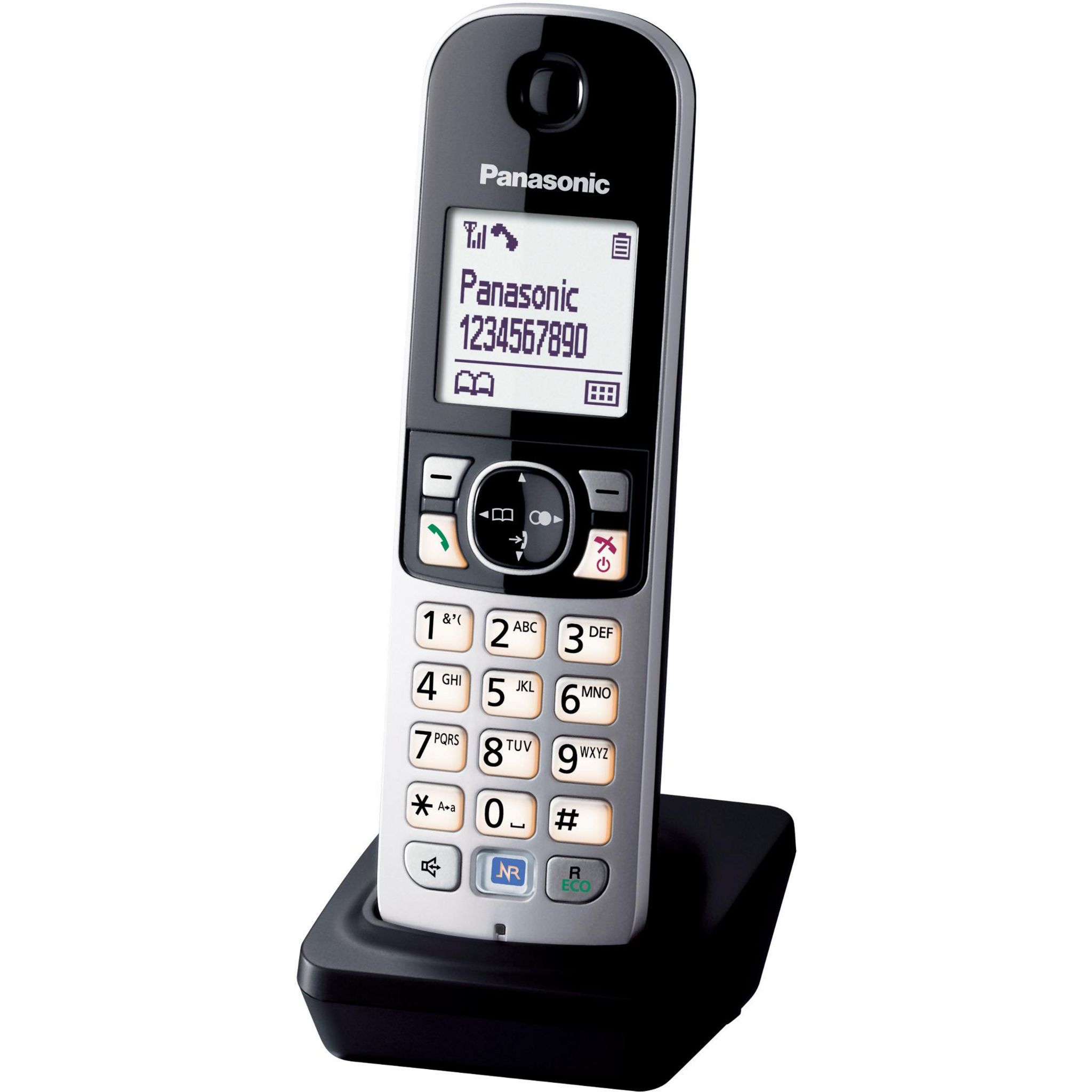 Panasonic KXTGA681EXB Téléphone sans fil dect Panasonic KXTGA681EXB avec qualité sonore et facilité d?utilisation, l?élégance en plus. Inspiré du monde de la HiFi, la fonction réduction de bruit, unique à Panasonic, atténue le bruit ambiant dans lequel se trouve votre interlocuteur pour une communication plus aisée.Confort d?utilisationEcran large et rétro-éclairé de 4.5 cm.Touches large et rétro-éclairées.Mains libres.Compatible box ADSL.Caractéristiques UniquesFonction Réduction de Bruit.Touche intelligente pour un accès direct aux fonctions clés.Mode éco personnalisable.Répertoire / Options de communicationRestriction des appels entrants* et sortants.Répertoire partagé de 120 noms et numéros.Liste des 50 derniers appels reçus.Liste des 10 derniers appels émis.Intercommunication de combiné à combiné.Mode conférence avec un appel extérieur.Verrouillage du clavier.Autonomie en veille de 170 heures.Autonomie en communication de 15 heures.Temps de charge de 7 heures.Piles rechargeables incluses (2 x AAA NiMh).