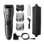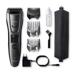 Panasonic ERGB80H503 Tondeuse multifonction Panasonic ERGB80H503 pour cheveux, barbe et corps. Alimentation par secteur et rechargeable pour un fonctionnement sans fil . Ses trois peignes spécialement conçus pour les cheveux (11 à 20 mm), la barbe (1 à 10 mm) et le corps (1,5 mm) en font une tondeuse qui s'adapte à tous les styles. Elle dispose également d'une tondeuse de précision rétractable pour dessiner les contours, tailler les pattes ou encore dessiner moustache et bouc. 40 positions de 0,5 mm à 20 mm (0,5 mm sans sabot) avec molette de réglage rapide. Lame inox de 40 mm avec inclinaison de 45° pour une coupe de précision. Nettoyage simplifié grâce à un système intégré à la tête pour éliminer facilement les poils (lavable).