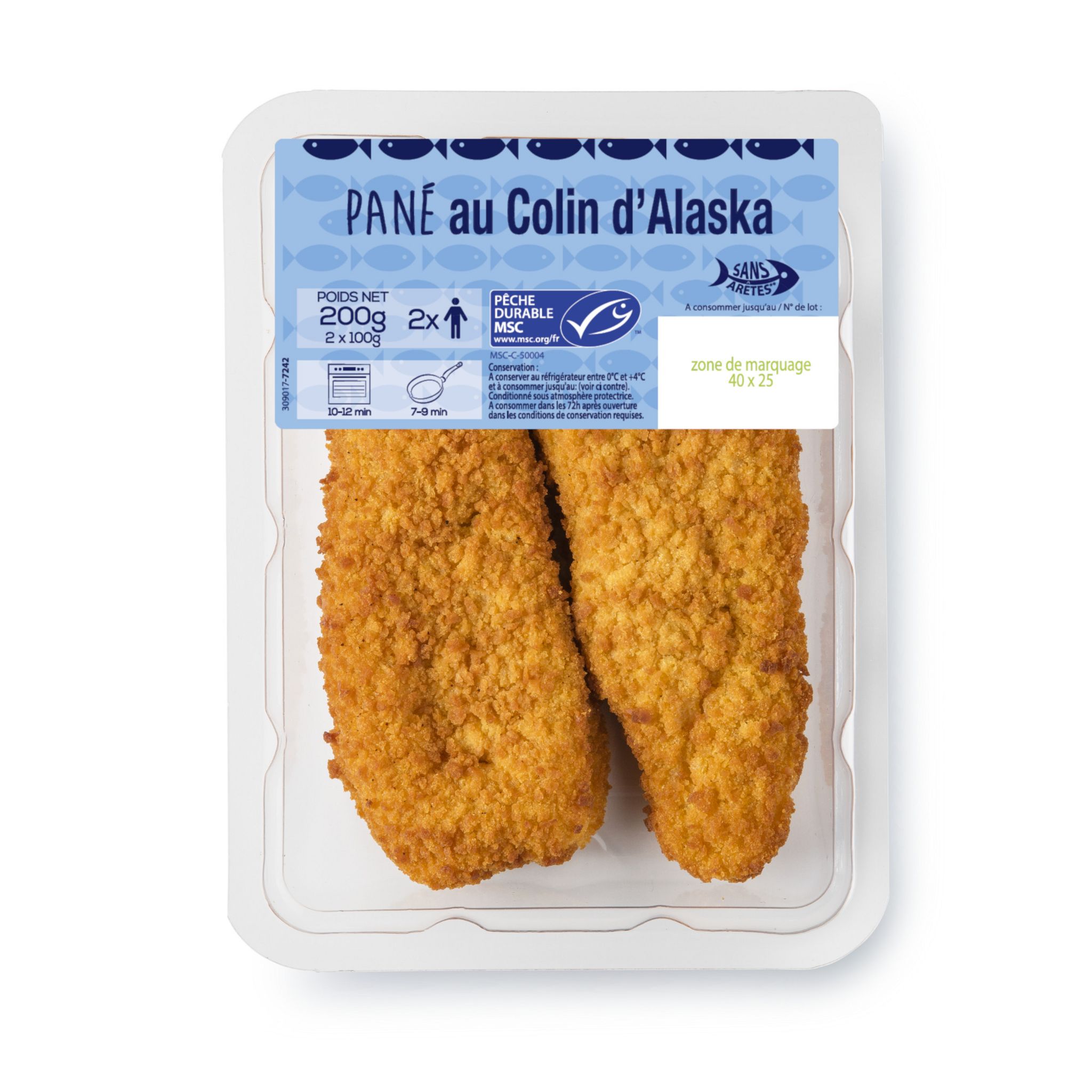 Préparation à base de colin d'Alaska MSC, sans arêtes, panée, préfrite, cuite, réfrigérée