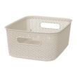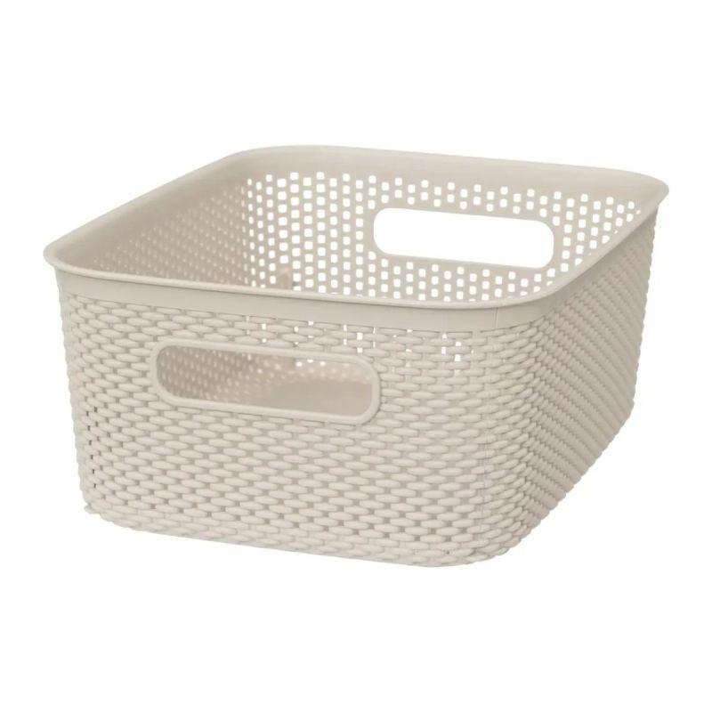 Informations Techniques : Dimensions : L. 19,5 x l. 25,5 x H. 10,5 cm Matière : Polypropylène Spécificités : Pratique & Utile Panier de rangement Design crochet Forme rectangulaire Capacité : 4 L Poids : 0,17 kg Couleur : Beige Lin