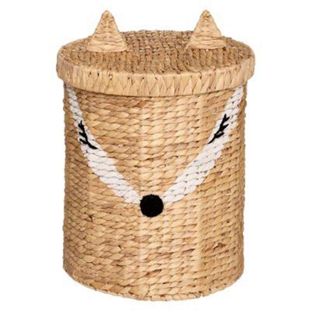 Informations Techniques : Dimensions : D. 37 x H. 50 cm Matières : Fer & Jacinthe Spécificités : Tendance & Moderne Panier de Rangement Forme Ronde Avec Couvercle Design Renard Poids : 1,8 kg Couleur : Naturel