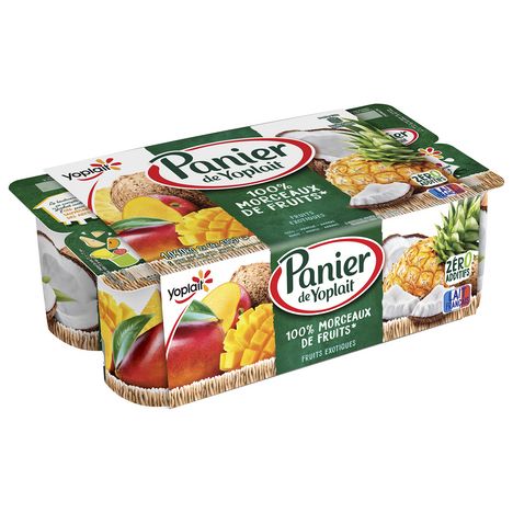 Découvrez les yaourts aux fruits Panier de Yoplait : 8 yaourts aux fruits exotiques (coco, mangue, ananas). Nous avons élaboré une nouvelle recette avec plus de fruits et zéro additifs pour vous offrir un yaourt avec de délicieux morceaux de fruits et du lait 100 % français. Panier de Yoplait, c’est l'alliance gourmande de bons fruits et d'un yaourt onctueux pour un maximum de plaisir à partager en famille. Retrouvez tout le savoir-faire de Yoplait et le bon goût du fruit avec la gamme Panier de Yoplait. Yoplait, goûtons la vie du bon côté ! *la coloration est apportée par des jus de fruits ou légumes