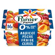 Panier de Yoplait 0%, c'est un dessert onctueux et des bons fruits, avec 0% de matière grasse. Panier de Yoplait c'est : • 100% de lait de nos régions • 100% de morceaux de fruits mis en œuvre dans nos recettes • 100% de notre production provient de nos laiteries du Mans ou de Vienne • Sans conservateur, ni colorant et arômes artificiels Notre engagement ne s'arrête pas là. Nous nous efforçons à réduire notre empreinte carbone en : • Réduisant le plastique de 13% sur nos pots depuis 10 ans • Utilisant que du carton 100% recyclé
