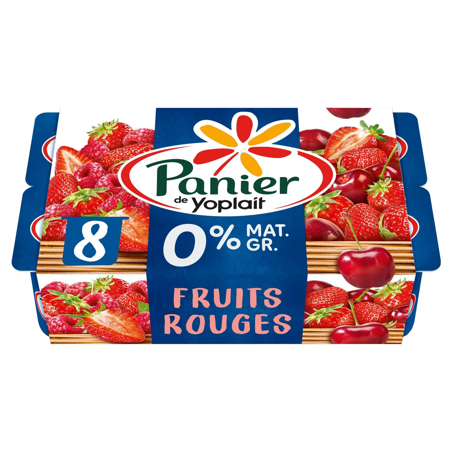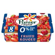 Panier de Yoplait 0%, c'est un dessert onctueux et des bons fruits, avec 0% de matière grasse. Panier de Yoplait c'est : • 100% de lait de nos régions • 100% de morceaux de fruits mis en œuvre dans nos recettes • 100% de notre production provient de nos laiteries du Mans ou de Vienne • Sans conservateur, ni colorant* et arômes artificiels Notre engagement ne s'arrête pas là. Nous nous efforçons à réduire notre empreinte carbone en : • Réduisant le plastique de 13% sur nos pots depuis 10 ans • Utilisant que du carton 100% recyclé *la coloration est apportée par des jus de légumes