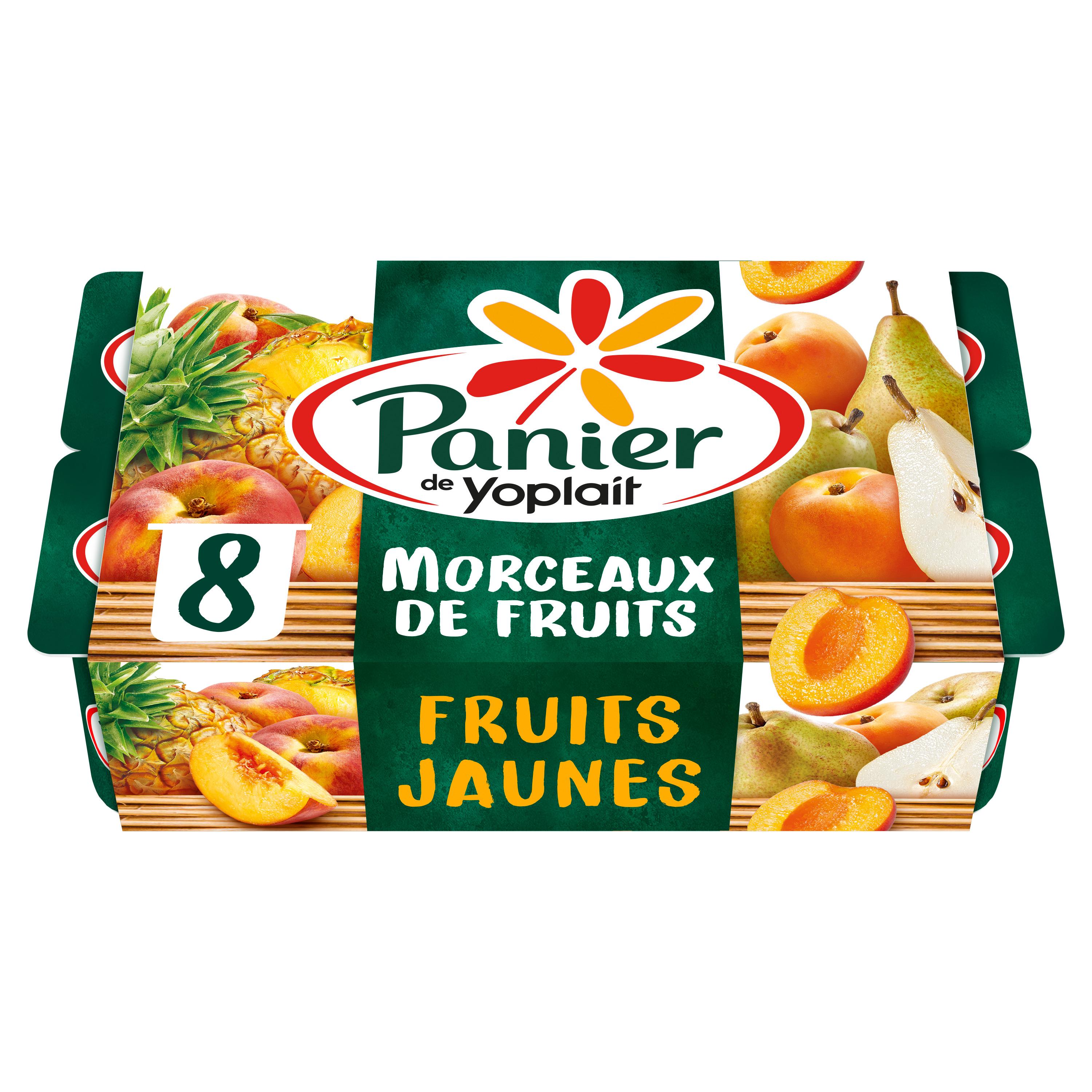 Découvrez les yaourts aux fruits Panier de Yoplait : 8 yaourts aux fruits jaunes (pêche, abricot, poire, ananas). Nous avons élaboré une nouvelle recette avec plus de fruits et zéro additifs pour vous offrir un yaourt avec de délicieux morceaux de fruits et du lait 100 % français. Panier de Yoplait, c'est l'alliance gourmande de bons fruits et d'un yaourt onctueux pour un maximum de plaisir à partager en famille. Retrouvez tout le savoir-faire de Yoplait et le bon goût du fruit avec la gamme Panier de Yoplait. Yoplait, goûtons la vie du bon côté ! *la coloration est apportée par des jus de légumes