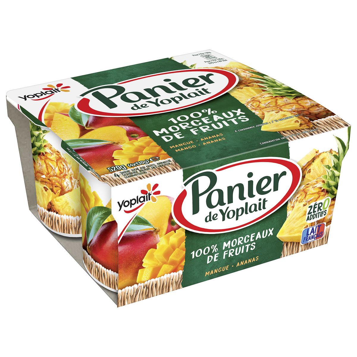 Découvrez les yaourts aux fruits Panier de Yoplait : 4 yaourts aux fruits exotiques avec 2 parfums différents (mangue et ananas). Nous avons élaboré une nouvelle recette avec plus de fruits et zéro additifs pour vous offrir un yaourt avec de délicieux morceaux de fruits et du lait 100 % français. Panier de Yoplait, c’est l'alliance gourmande de bons fruits et d'un yaourt onctueux pour un maximum de plaisir à partager en famille.