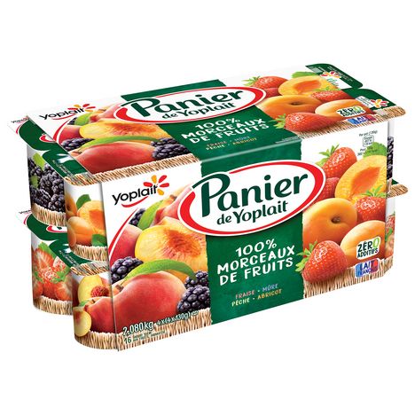 Découvrez les yaourts aux fruits Panier de Yoplait : un panaché de 16 yaourts aux fruits jaunes et aux fruits rouges pour satisfaire tous les goûts ! Nous avons élaboré une nouvelle recette avec plus de fruits et zéro additifs pour vous offrir un yaourt avec de délicieux morceaux de fruits et du lait 100 % français. Panier de Yoplait, c’est l'alliance gourmande de bons fruits et d'un yaourt onctueux pour un maximum de plaisir à partager en famille.