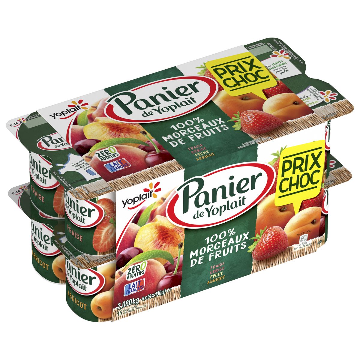 Panier de Yoplait L’Original, c’est l’alliance gourmande de bons morceaux de fruits et d’un yaourt onctueux pour les amateurs de fruits. Panier de Yoplait l’Original c’est : • 100% de lait de nos régions • 100% de morceaux de fruits mis en œuvre dans nos recettes • 100% de notre production provient de nos laiteries du Mans ou de Vienne • Sans conservateur, ni colorant et arômes artificiels Notre engagement ne s’arrête pas là. Nous nous efforçons à réduire notre empreinte carbone en : •Réduisant le plastique de 13% sur nos pots depuis 10 ans •Utilisant que du carton 100% recyclé Yaourt sucré, aux fruits aromatisé