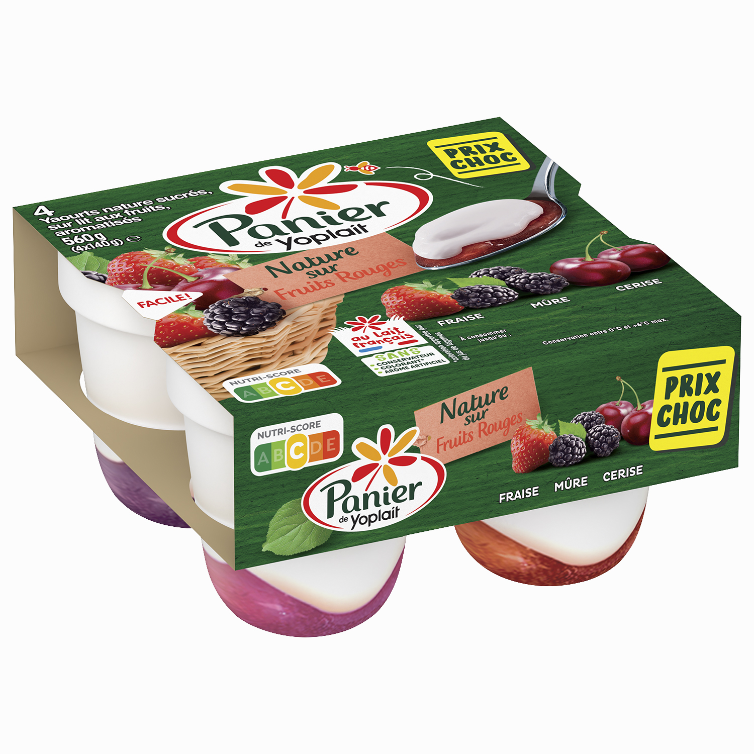 Panier de Yoplait Nature sur Fruits, c'est toute la fraîcheur et l'onctuosité d'un yaourt nature sucré sur un savoureux lit de fruits.