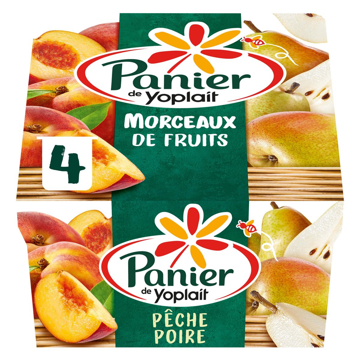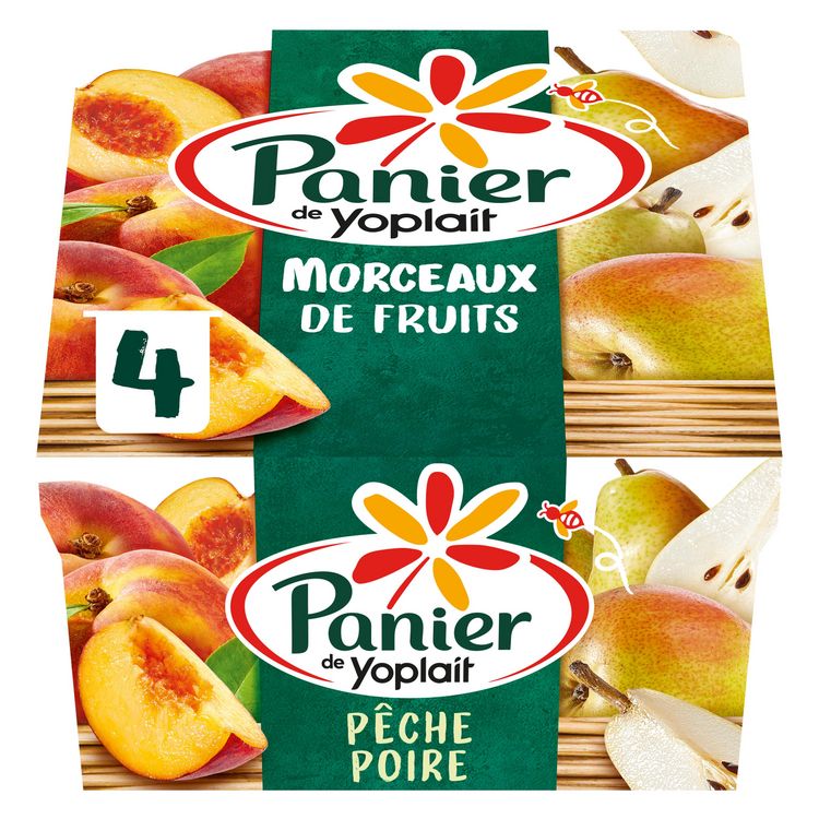 Découvrez les yaourts aux fruits Panier de Yoplait : 4 yaourts aux fruits avec 2 parfums différents (pêche et poire). Nous avons élaboré une nouvelle recette avec plus de fruits et zéro additifs pour vous offrir un yaourt avec de délicieux morceaux de fruits et du lait 100 % français. Panier de Yoplait, c'est l'alliance gourmande de bons fruits et d'un yaourt onctueux pour un maximum de plaisir à partager en famille. Retrouvez tout le savoir-faire de Yoplait et le bon goût du fruit avec la gamme Panier de Yoplait. Yoplait, goûtons la vie du bon côté ! *la coloration est apportée par des jus de légumes