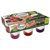Yaourt nature sucré sur lit aux fruits, aromatisé.
