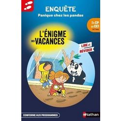 Un roman-jeu pour réviser les principales notions du CP ! Alice va passer quelques jours chez son cousin Clément. Elle est ravie car sa tante est vétérinaire dans un zoo. Mais dès son arrivée, un drame se produit : un des deux bébés pandas a disparu ! Alice et Clément mènent l'enquête... Un cahier de vacances ludique et original qui associe un roman palpitant à des activités de révision : pour faire avancer l'histoire, l'enfant doit résoudre des énigmes sous forme d'exercices. Pour les enfants de 6-7 ans L'énigme des vacances : une vraie histoire à suspense, des exercices, des corrigés pour un travail en complète autonomie et des rappels de cours sur les notions abordées dans l'ouvrage.