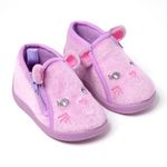 Des chaussons bébé fille amusants et confortables, vite on les commande sans hésiter ! Chaussons montants bien emboîtants avec dessus en textile. Pratique : zip sur le côté pour les mettre facilement. Broderie et oreilles fantaisie. Intérieur confortable en textile. Ces chaussons bébé fille