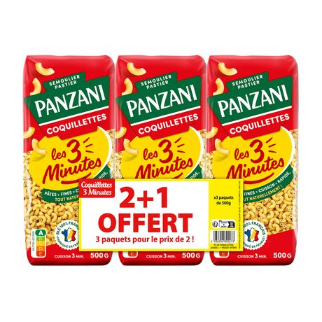Nos coquillettes 3 minutes Panzani c'est tout le plaisir et la qualité des pâtes Panzani au blé 100% français, prêtes en seulement 3 minutes grâce à une pâte plus fine qui permet une cuisson plus rapide, tout naturellement. Elles sont fabriquées avec amour dans nos usines de pâtes de Marseille et Nanterre.