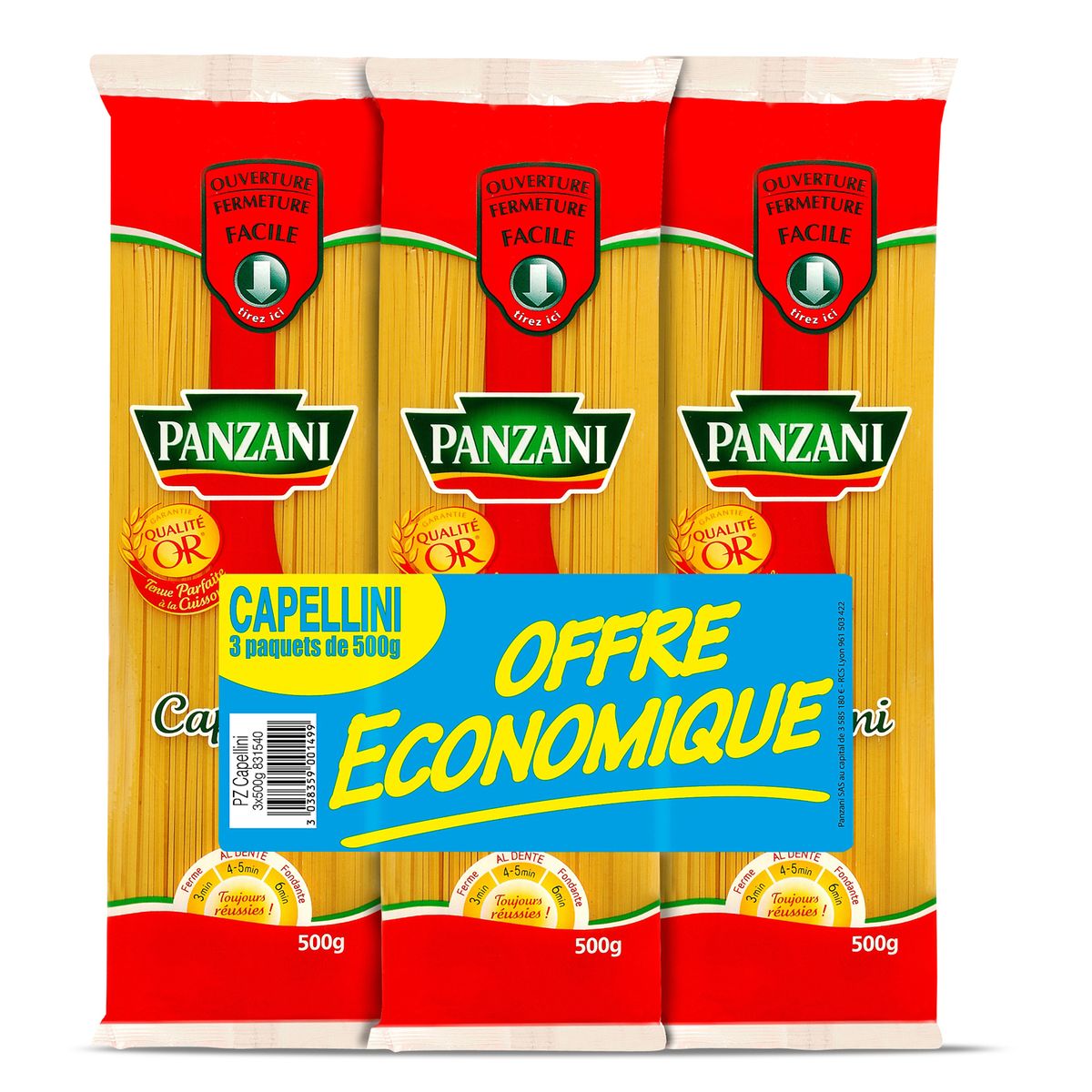 Panzani fantaisie capellini 3x500g offre éco