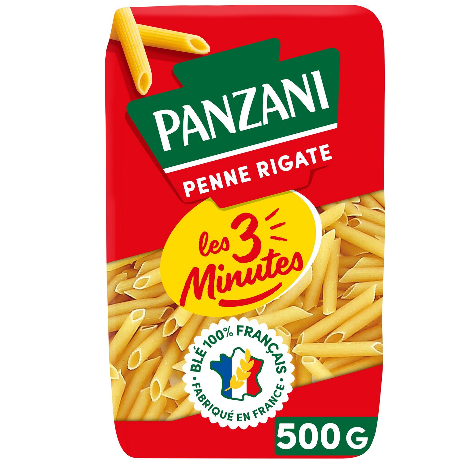 Nos penne 3 minutes Panzani c'est tout le plaisir et la qualité des pâtes Panzani au blé 100% français, prêtes en seulement 3 minutes grâce à une pâte plus fine qui permet une cuisson plus rapide, tout naturellement. Elles sont fabriquées avec amour dans nos usines de pâtes de Marseille et Nanterre.