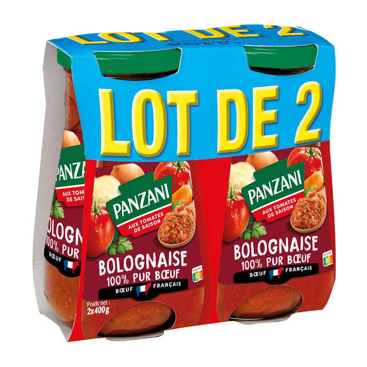 Ingrédients : pulpe de tomates et concentré de tomates (55%), boeuf 18%, eau, légumes frais 9% (carottes, oignons), sel, sucre, amidon transformé de maïs, persil, arômes, huile de tournesol, ail, poivre.