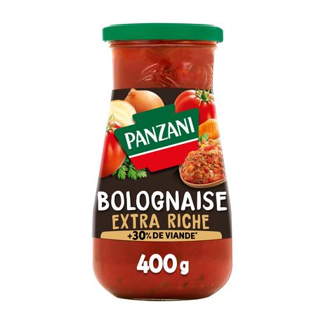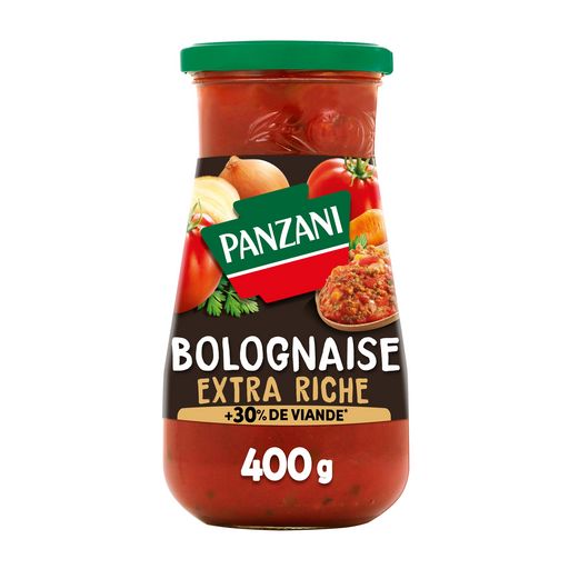 Tout le savoir-faire des recettes Panzani, avec 30 % de viande en plus : ce sont les gourmands qui vont être contents ! Une généreuse sauce Bolognaise préparée avec une viande extra tendre 100% française et de savoureuses tomates mûries au soleil.