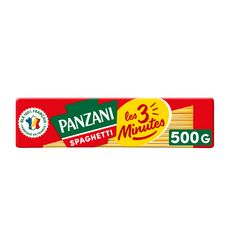 Nos spaghetti 3 minutes Panzani c'est tout le plaisir et la qualité des pâtes Panzani au blé 100% français, prêtes en seulement 3 minutes grâce à une pâte plus fine qui permet une cuisson plus rapide, tout naturellement. Elles sont fabriquées avec amour dans nos usines de pâtes de Marseille et Nanterre.