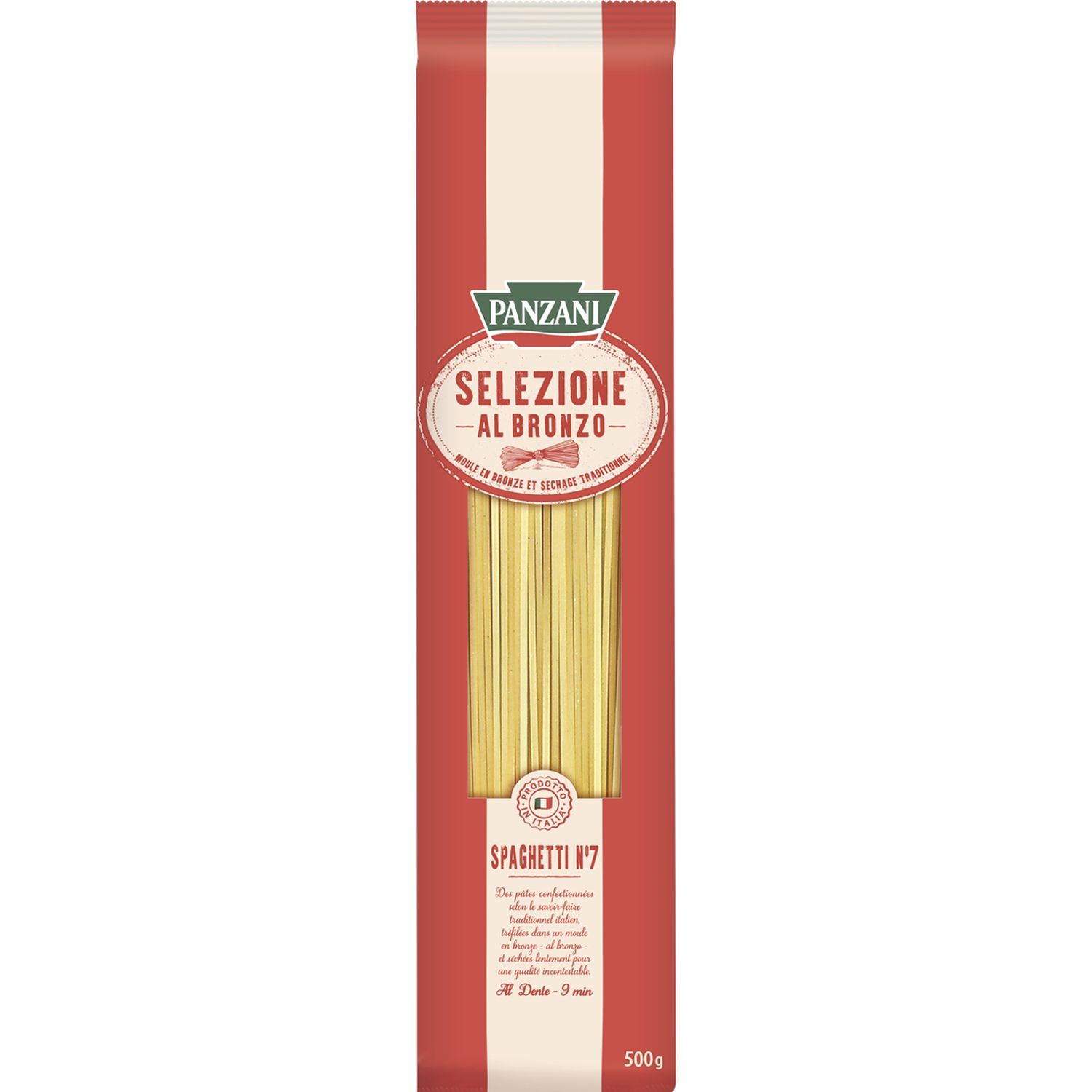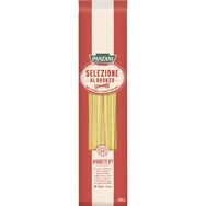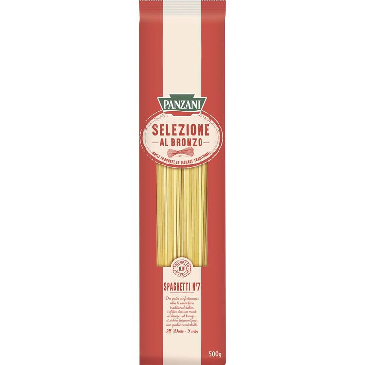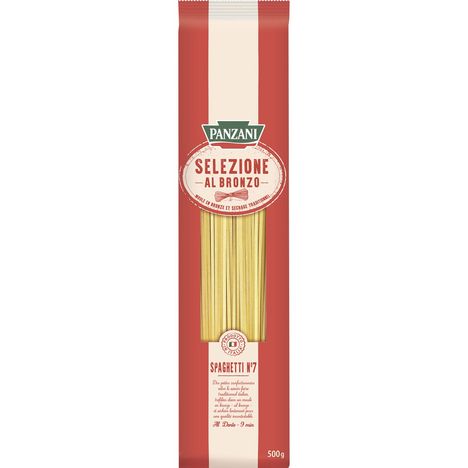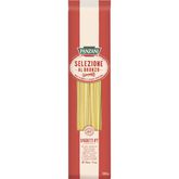 Pâtes alimentaires de qualité supérieure L'ensemble de la gamme de pâtes Selezione Al Bronzo est confectionné de manière traditionnelle à partir d'une sélection de blés durs de qualité supérieure qui lui donne cette fameuse couleur jaune d'or et ce goût inimitable de l'authenticité propre aux pâtes de caractère.Des pâtes confectionnées selon le savoir-faire traditionnel italien, tréfilées dans un moule en bronze - al Bronzo - et séchées lentement pour une qualité incontestable.