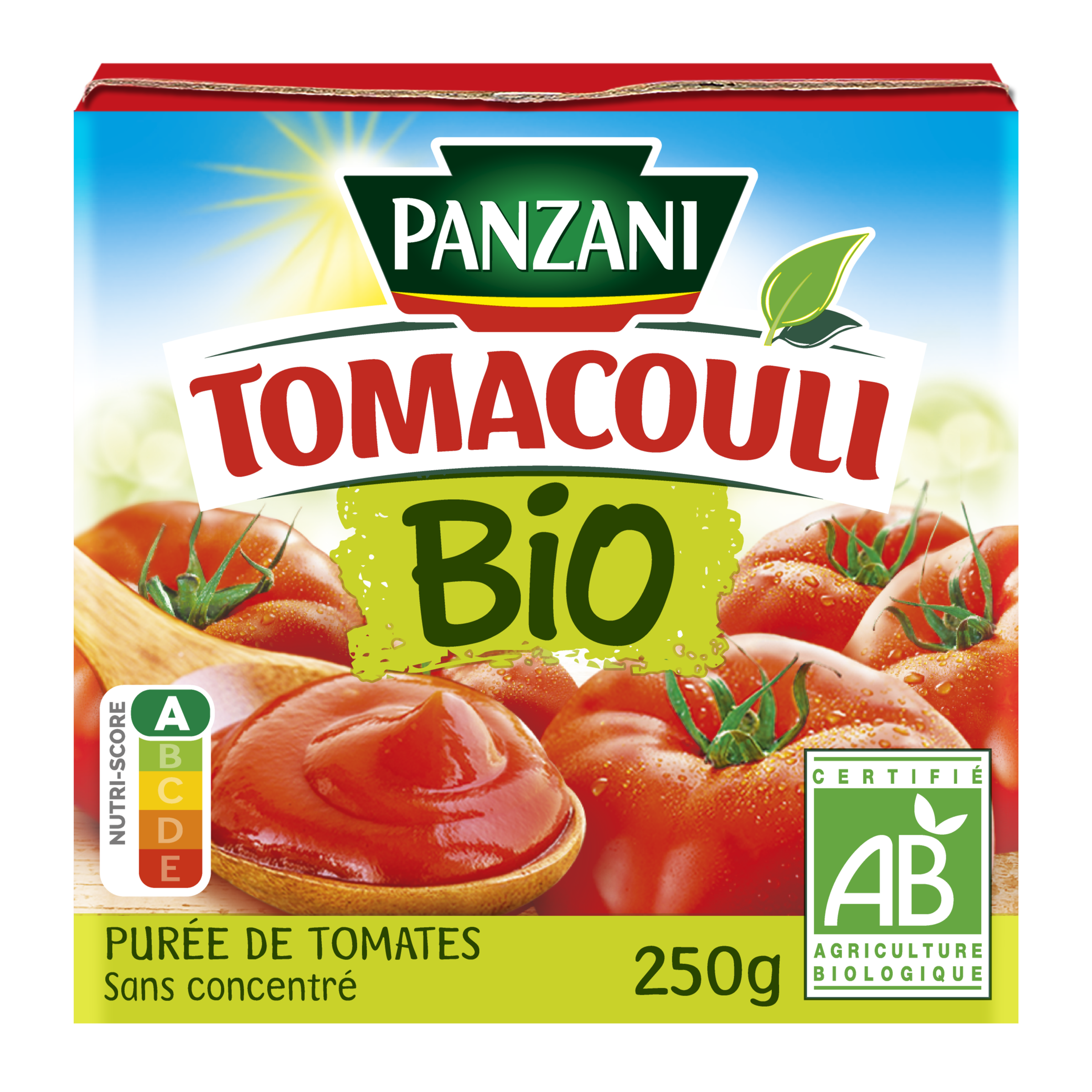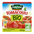 Certifié Agriculture Biologique (AB).2 bonnes raisons pour se mettre au Tomacouli bio : - Tomacouli bio c'est bon ! Récoltées à pleine maturité, les tomates de Tomacouli bio vous garantissent une saveur incomparable. Le Tomacouli Nature Bio est produit sans utilisation de colorant** ni de conservateur **, rien que le goût authentique de la tomate ! - Tomacouli Bio c'est sûr ! Avec la garantie de la marque AB vous êtes sûr d'acheter un produit cultivé selon la réglementation de l'agriculture biologique. ** Conformément à la réglementation en vigueur. Purée de tomates Bio réduite à 7%