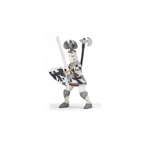Equipé de son armure aux couleurs du royaume ainsi que de son heaume orné d'un cimier, le chevalier s'apprête à faire son entrée dans le tournoi. Véritable ornement de parade, le cimier impressionne adversaires et spectateurs présents. Figurine vendue seule, compatible avec la monture Cheval drapé blanc référence 39786.