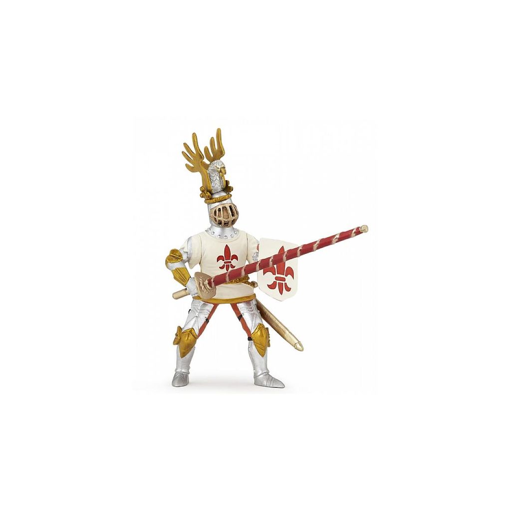 Le chevalier blanc fleur de lys ainsi que son destrier arborent avec fierté les couleurs de leur royaume. Ensemble ils font front, repoussant les vagues d'ennemies qui tentent de s'emparer du château.