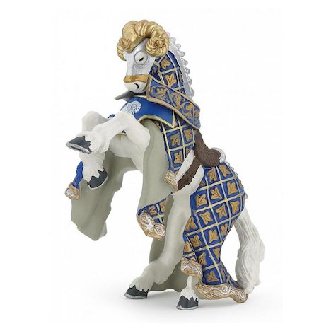 Equipé de son armure et de son heaume à cimier, le maître des armes bélier est prêt à partir au combat! Quoi qu'il en coûte il défendra son royaume contre l'envahisseur et pour cela il sait qu'il peut compter sur son fidèle destrier. Les cors résonnent sur le champ de bataille, la clameur monte parm