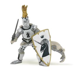 Equipé de son armure et de son heaume à cimier, le maître des armes licorne est prêt à partir au combat! Quoi qu'il en coûte il défendra son royaume contre l'envahisseur et pour cela il sait qu'il peut compter sur son fidèle destrier. Les cors résonnent sur le champ de bataille, la clameur monte parmi les chevaliers, il est temps pour lui de se saisir de son épée et de son bouclier orné d'une licorne, symbole de puissance et de pureté, et de partir à l'attaque.