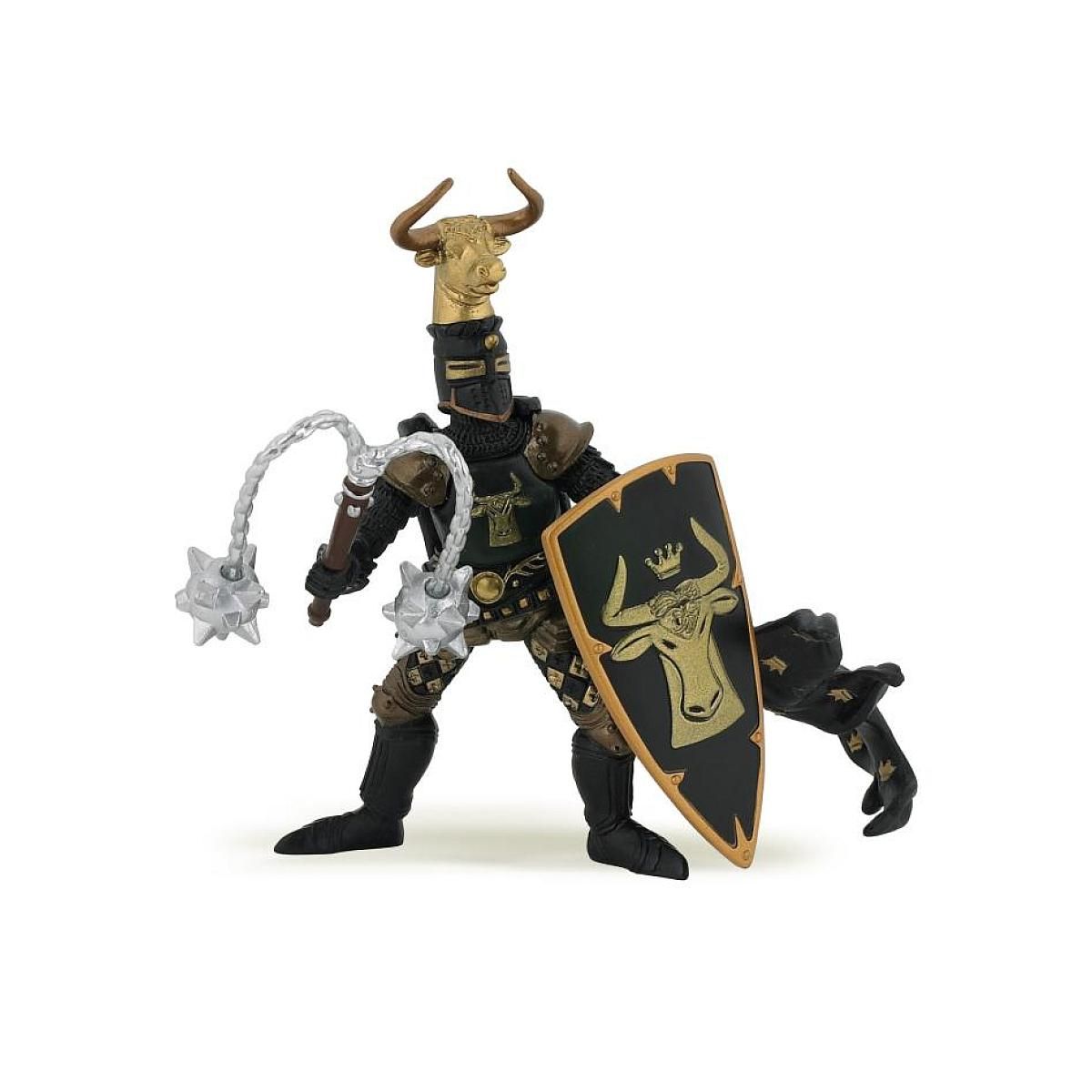 Equipé de son armure et de son heaume à cimier, le maître des armes taureau est prêt à partir au combat! Quoi qu'il en coûte il défendra son royaume contre l'envahisseur et pour cela il sait qu'il peut compter sur son fidèle destrier. Les cors résonnent sur le champ de bataille, la clameur monte parmi les chevaliers, il est temps pour lui de se saisir de son épée et de son bouclier orné d'un taureau.
