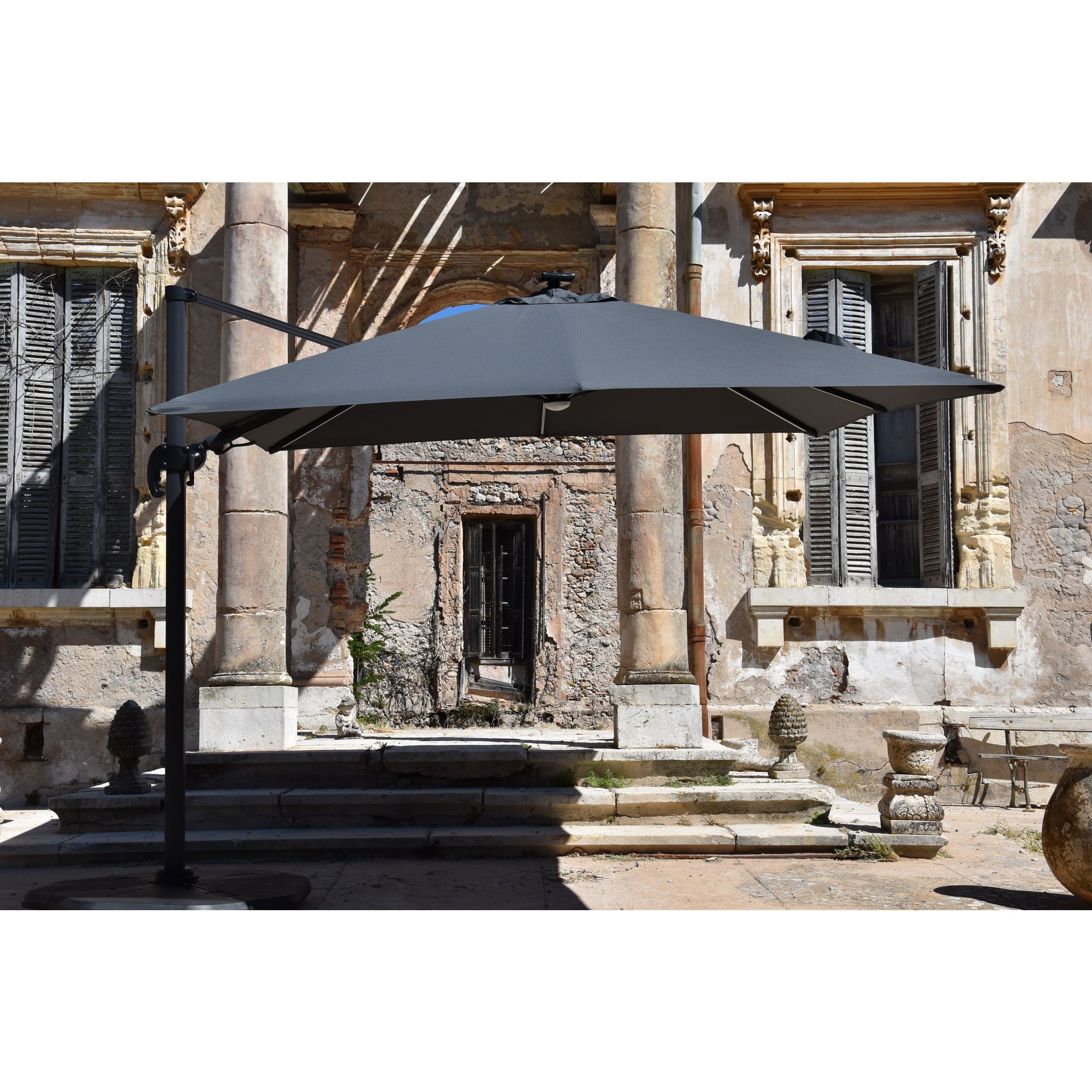 Optez pour ce parasol déporté 3x3m CAPEO ! Très pratique avec sa grande taille, il vous apportera de l'ombre sur une grande surface. L'ouverture et la fermeture du parasol se fait très facilement avec sa manivelle. Ce parasol est inclinable, orientable et pivotant sur 360°, ce qui vous permettra de le placer et déplacer comme bon vous semble, sans être obligé d'employer toute votre force. Son plus ? Il est muni d'un éclairage LED, parfait si la nuit tombe pendant votre soirée en extérieur. Cette led est rechargeable au soleil mais aussi par câble USB. Ce modèle est en coloris Gris, mais vous pouvez aussi le retrouver en coloris écru (C1163184) ou Taupe (C1163181)