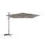 Ce parasol excentré, avec mât aluminium et baleines aciers, est recouvert d'une peinture taupe. Mât ovalisé pour une optimisation du coulissement de la poignée, toile en polyester 200/m². Orientable, vous pourrez l'incliner (5 positions) selon vos besoins. De plus, sa poignée vous permettra de une ouverture ou fermeture rapide et facile!