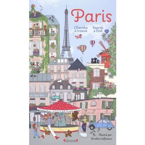 Une promenade poétique et un cherche & trouve bilingue à Paris ! A travers dix images, on parcourt la capitale, de Montmartre à la Tour Eiffel, de Bastille au château de Versailles, en passant par le Louvre et faisant des petites pauses gourmandes. Au fil des pages, on cherche et trouve huit objets ou personnages par double page : un ours sur un carrousel, un canotier qui s'envole, un bateau de pompiers sur la Seine, un serveur maladroit, un accordéoniste... Sous chaque objet, la version française et anglaise, pour devenir un vrai parisien ! Les images pleines de charme et de poésie d'Amélie Laffaiteur nous entrainent dans cette promenade ludique et linguistique !