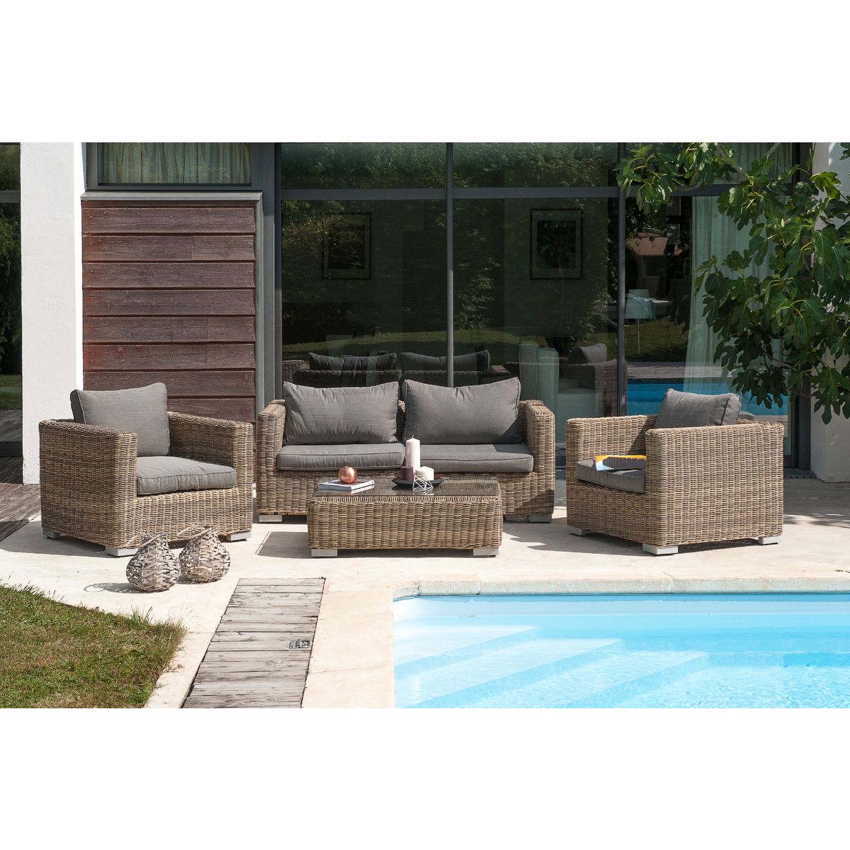 Salon bas de jardin - 4 places - Résine tressée - Miel - MONTMARTRE