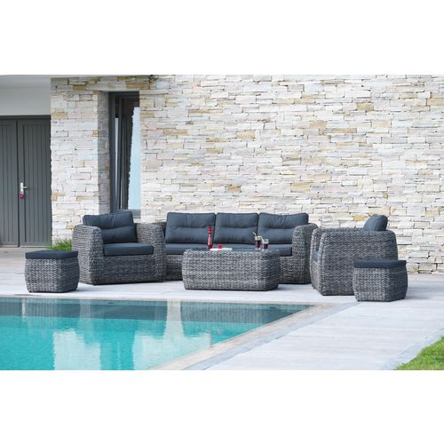 Salon bas de jardin - 7 places - Résine tressée - Gris - BAHAMAS