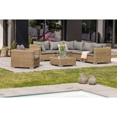 Salon bas de jardin modulable - 6 places - Résine tressée - miel - MONTMARTRE