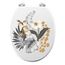 Informations Techniques : Dimensions : L. 46 x l. 37,5 x H. 5,5 cm Matières : MDF & Métal Spécificités : Pratique & Tendance Abattant WC déco Avec charnières en métal Motif floral Poids : 2,85 kg Couleur : Blanc