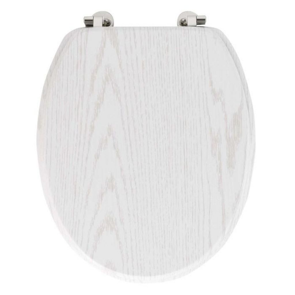Informations Techniques : Dimensions : L. 46 x l. 37,5 cm Matières : MDF & Métal Spécificités : Moderne & Utile Abattant WC Design effet bois Charnières en métal Facile à nettoyer Poids : 2,67 kg Couleur : Blanc