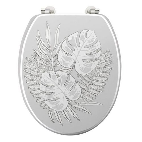 Informations Techniques : Dimensions : L. 37,5 x l. 46 cm Matière : MDF Spécificités : Pratique & Élégant Abattant WC Imprimé tons sur tons Motif feuilles Charnières métal Montage facile Poids : 2,67 kg Couleur : Gris