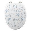 Informations Techniques : Dimensions : L. 37,5 x l. 46 cm Matière : MDF Spécificités : Pratique & Esthétique Abattant WC Imprimé bulles Charnières métal Montage facile Poids : 2,67 kg Couleur : Blanc