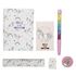 Informations Techniques : Dimensions : L. 11,2 x l. 1,3 x H. 15,3 cm Matière : Papier Spécificités : Pratique & Utile Accessoires de Papeterie Contient 1 Cahier, 1 Règle, 1 Gomme, 1 Stylo & 1 Bloc Note A Motifs Couleur : Blanc & Rose