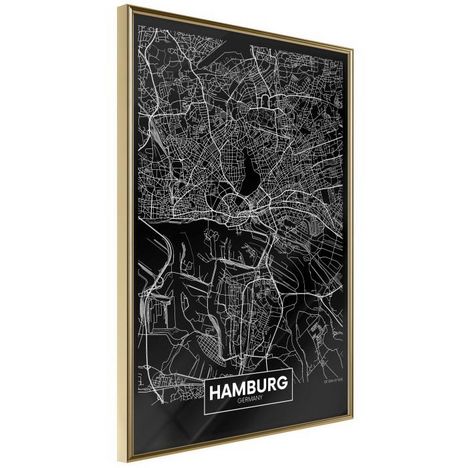 Affiche Murale Encadrée City Map Hamburg Dark