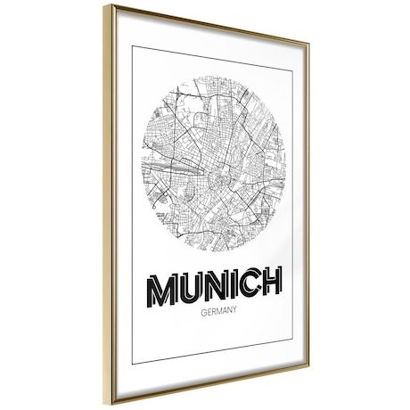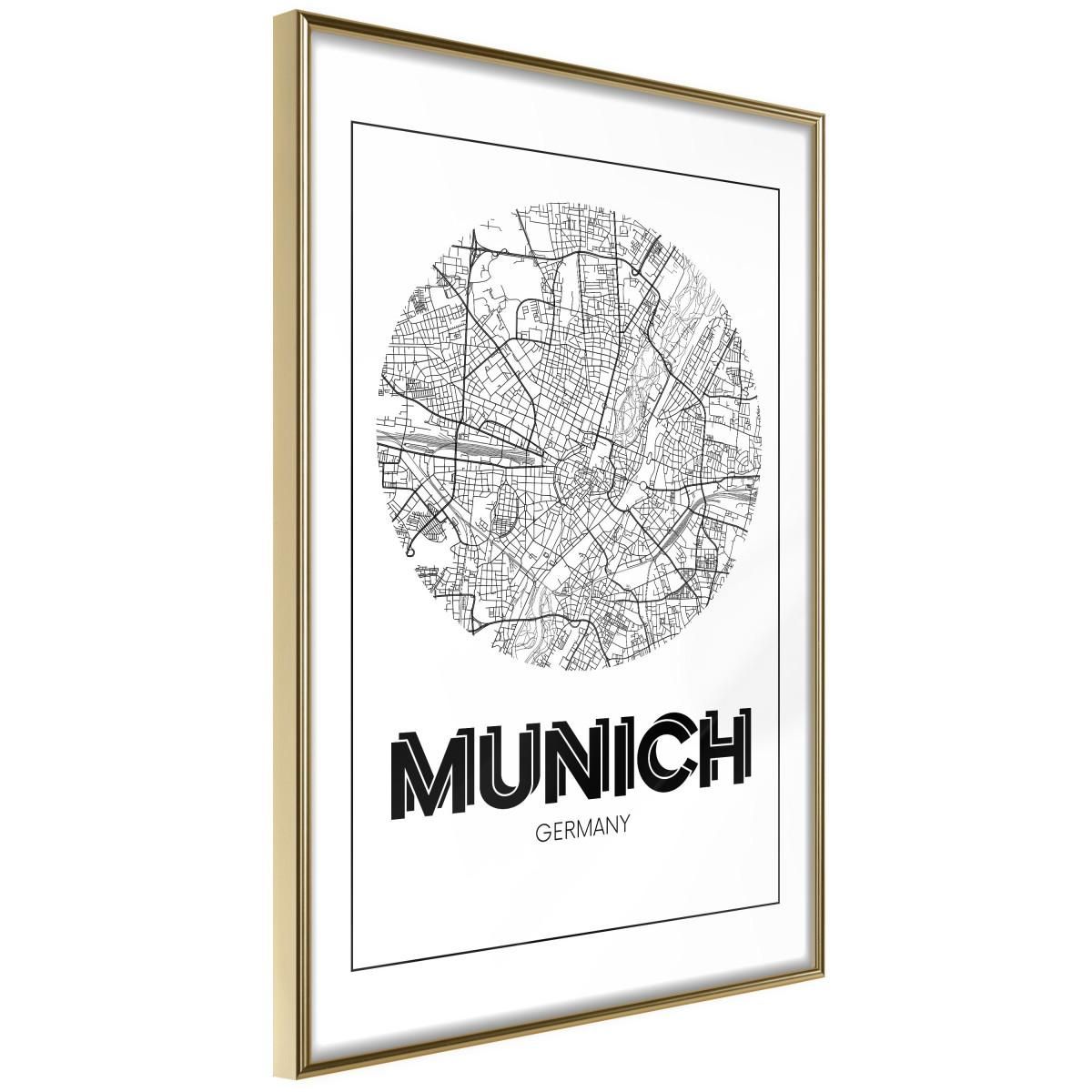 Affiche Murale Encadrée City Map Munich Round
