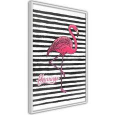 Affiche Murale Encadrée Flamingo on Striped Background