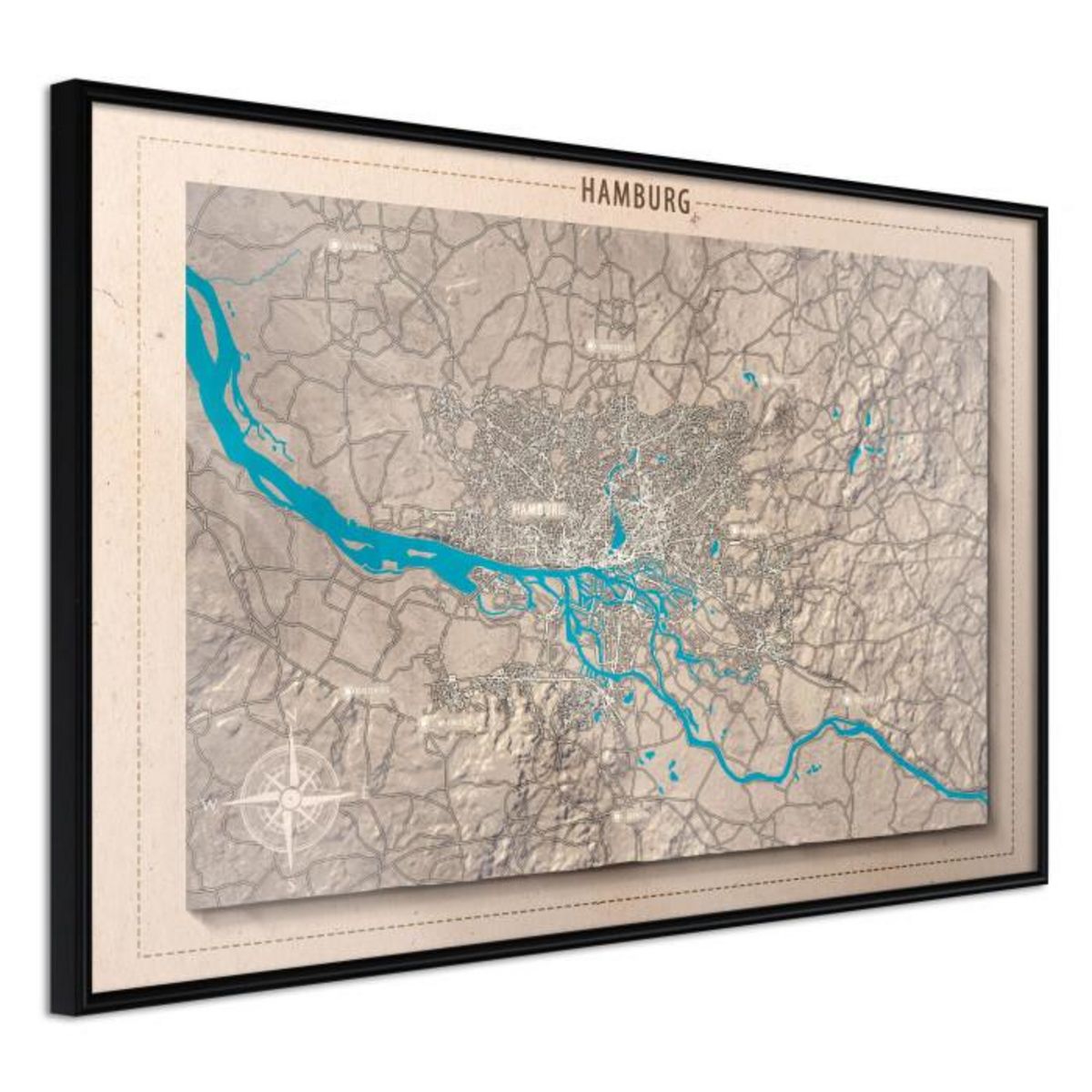 Affiche Murale Encadrée Raised Relief Map Hamburg