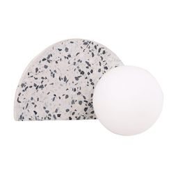 Informations Techniques : Dimensions : L. 20 x l. 11 x H. 13 cm Matières : Verre & Ciment (Terrazzo) Spécificités : Pratique & Original Applique déco Style vintage Douille : G9 Puissance : 5W Poids : 0,8 kg Couleur : Blanc