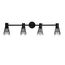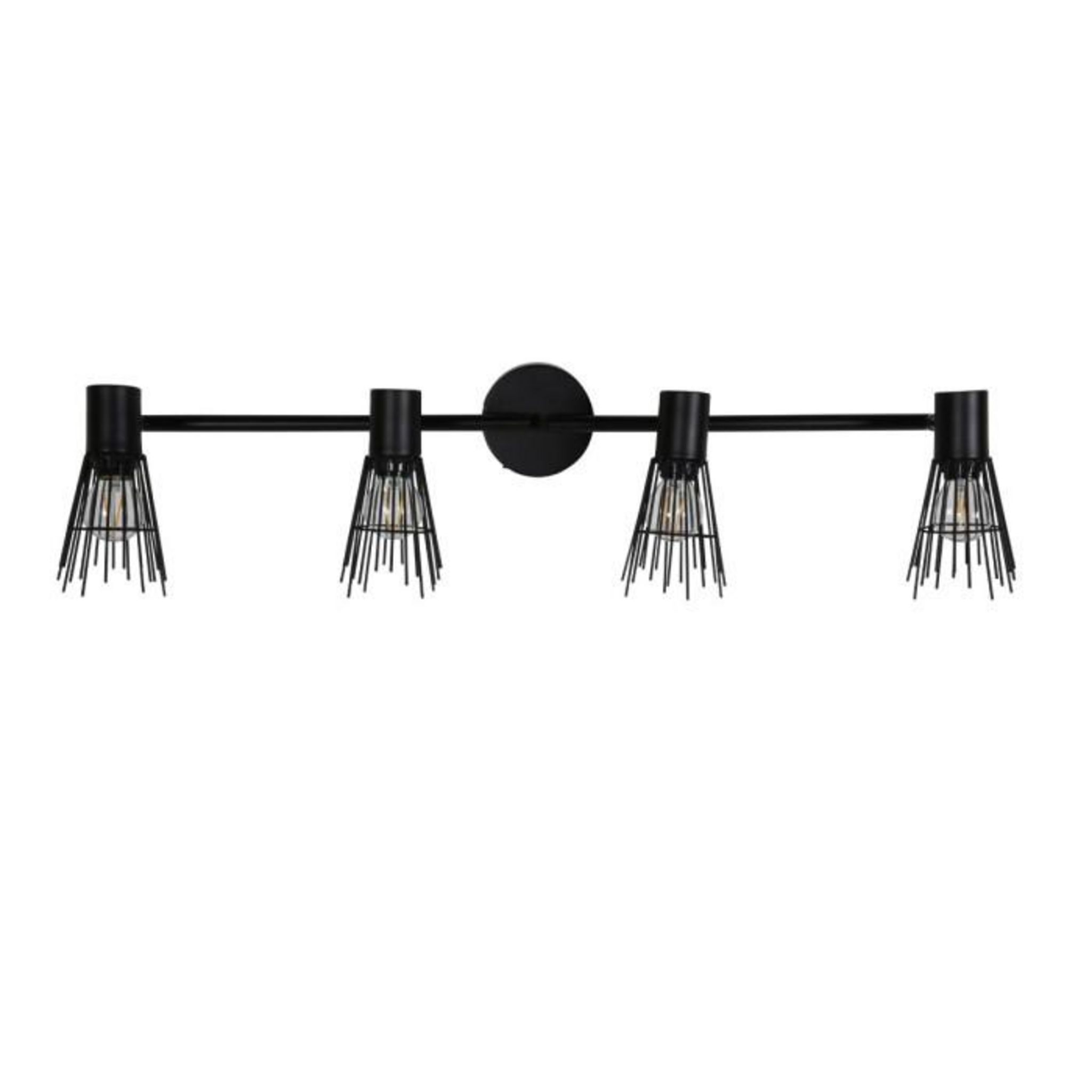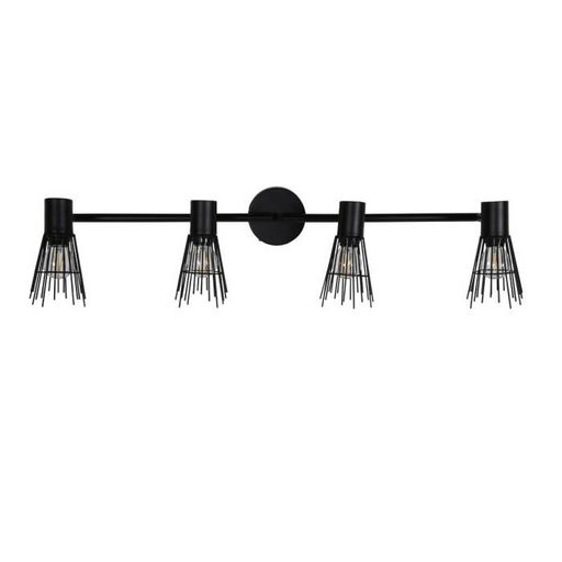 Informations Techniques : Dimensions : L. 70 x l. 19 x H. 15 cm Matières : Acier & PVC Spécificités : Pratique & Tendance Applique murale Avec 4 spots orientables Design cônes ajourés Douille : E14 Poids : 0,75 kg Couleur : Noir